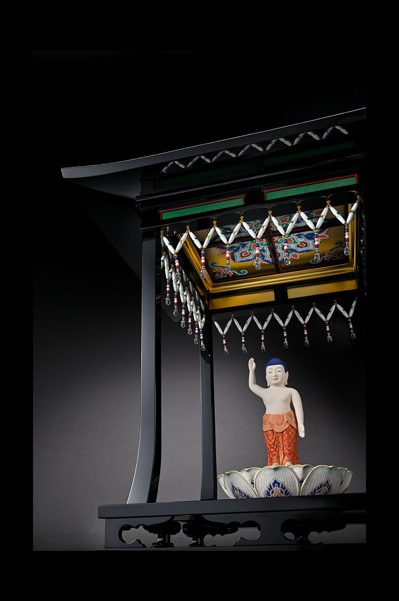 仏具は宗教用具としての実用性を持ちながらも、同時に美術的要素を多分に含んだアートでもあります。仏具という世界に誇れる日本の文化、日本の「美」を現代の生活空間に取り入れ、現代(いま)を生きる人々の心を満たすものをつくりたいとの思いから、独自のアートを創りを行っています。