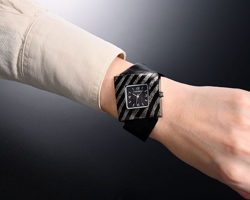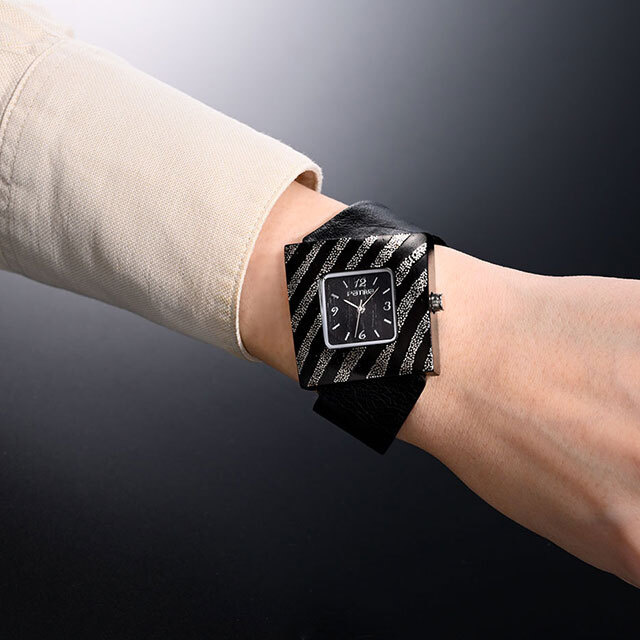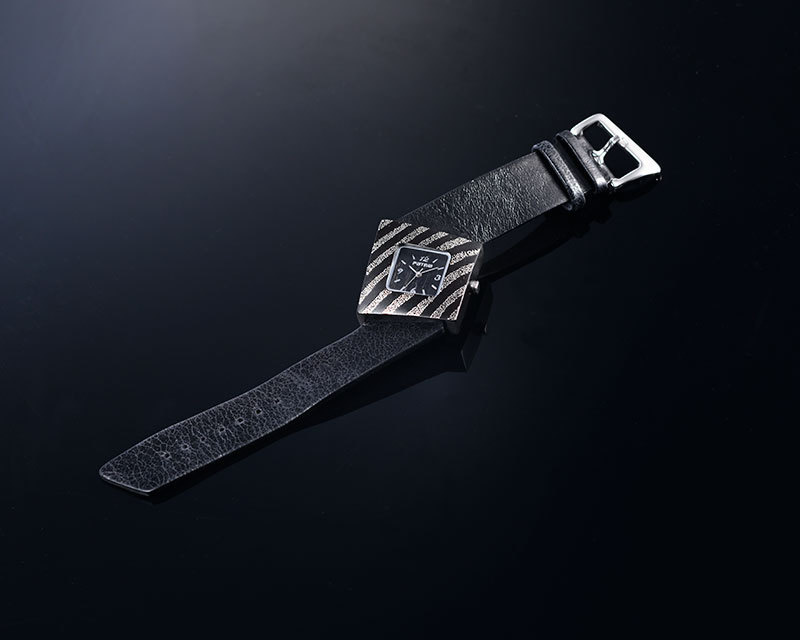 ニューヨーク在住のデザイナー長谷川ゆかの感性と京蒔絵の技術が融合した腕時計。木製のケースにプラチナの蒔絵を施した優雅な時計です。