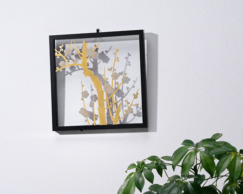 蘭、菊、梅、竹は、その高潔な姿が君子と呼ぶにふさわしいところから四君子と呼ばれています。ガラスの板に蒔絵で四君子を描いたインテリアアートです。