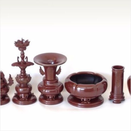 The artisans involved in these processes possess the highest level of skill as the holders of time-tested tradition. The result is superior quality and aesthetics. Many of these items remaining in existence today have been named National Treasures, Important Cultural Assets, and so on. However, as the Japanese economy grew and the demand for Buddhist ritual objects increased, inexpensive imitations began to flood the market from other production centers in Japan, or even from overseas. This trend tended to obscure the superiority of authentic Kyoto-made Buddhist objects.