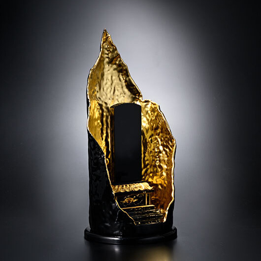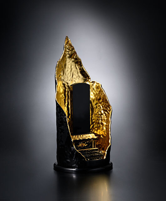 This display stand is originally designed for displaying Buddhist statues, ihai memorial tablets, memorabilia, or whatever you want. Painted with urushi lacquer and covered with gold leaf.