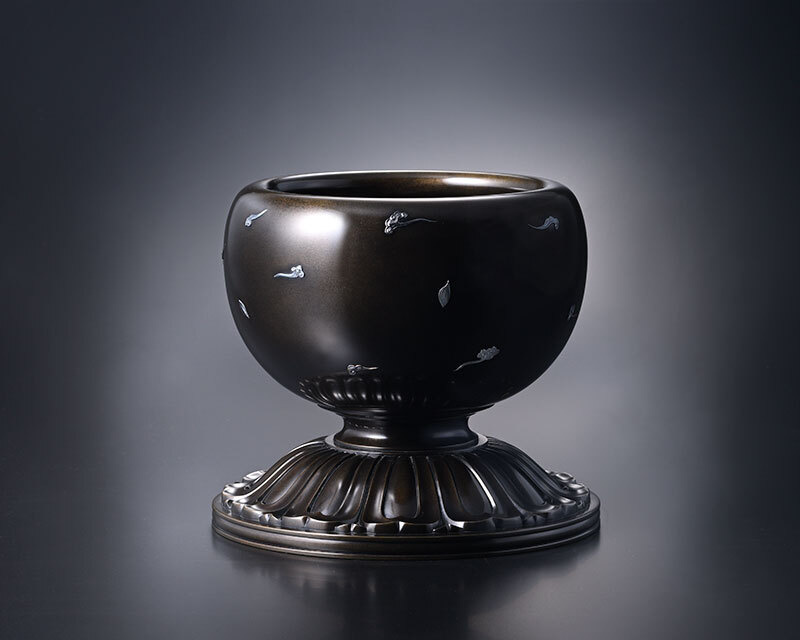蓮台形前香炉 唐金梨地 雲模様純銀高象嵌